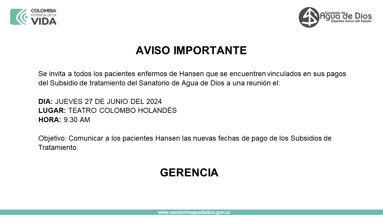 • Comunicado reunión pacientes Hansen. Consulte Aquí